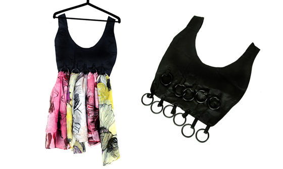 The bottom and top has bindings in the back and behind the neck and colored parts.